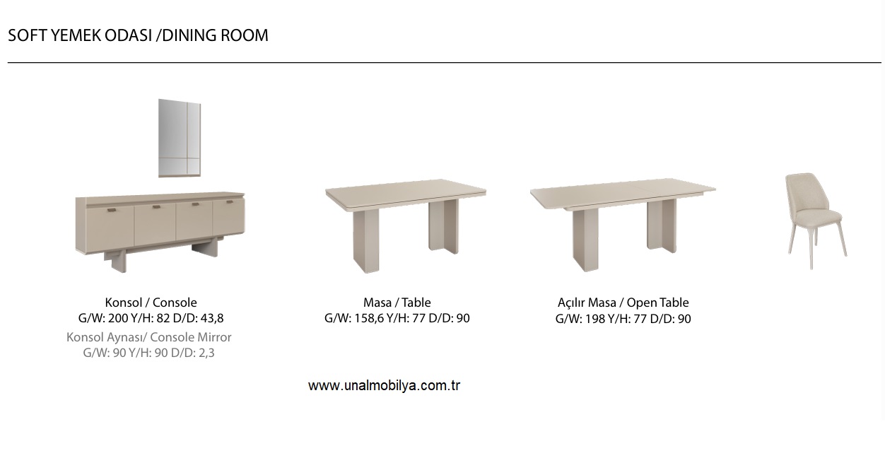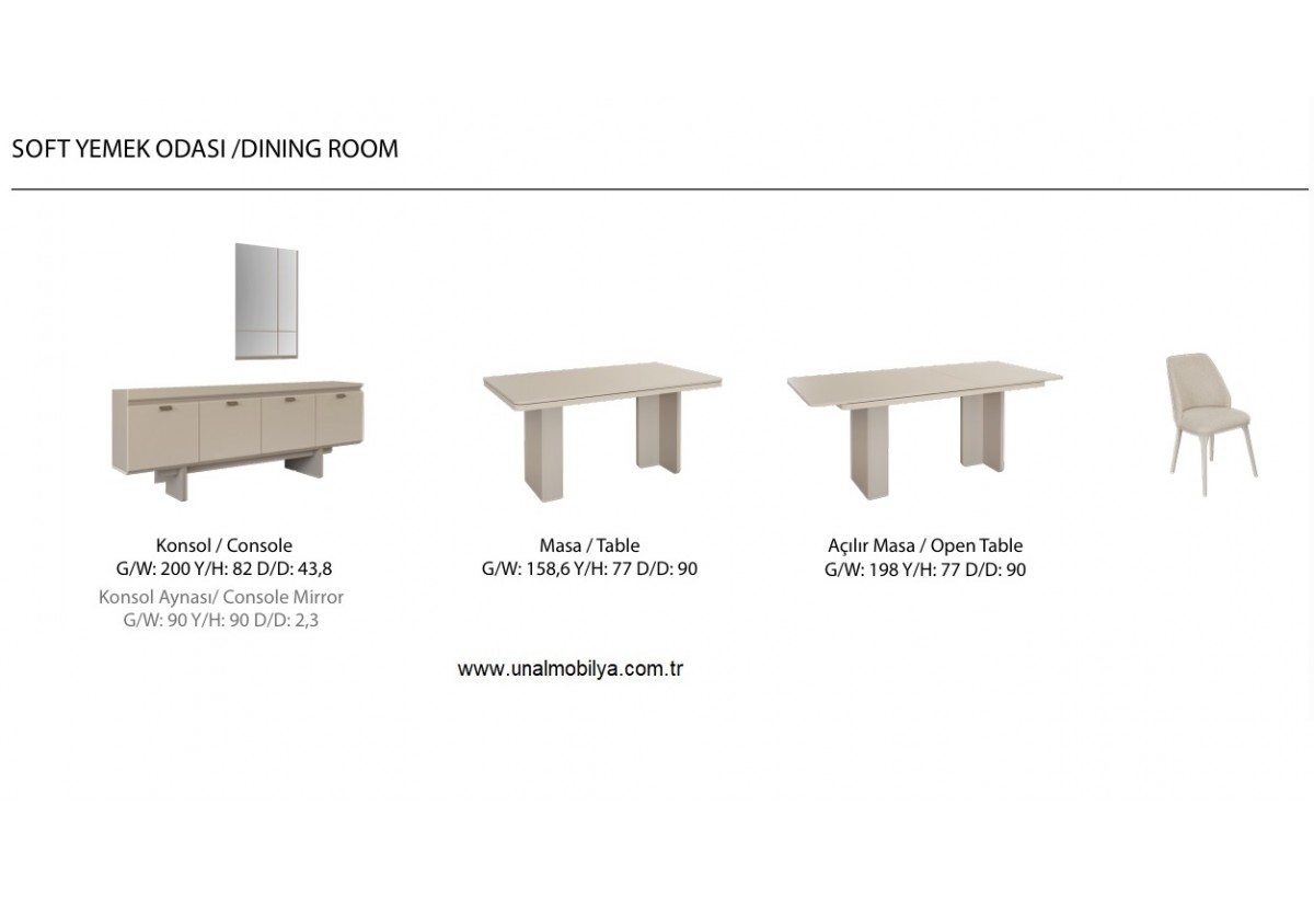 SOFT YEMEK ODASI TK KONSOL AYNA +AÇILIR MASA VE 4 ADET SANDELYE FİYATIDIR.
