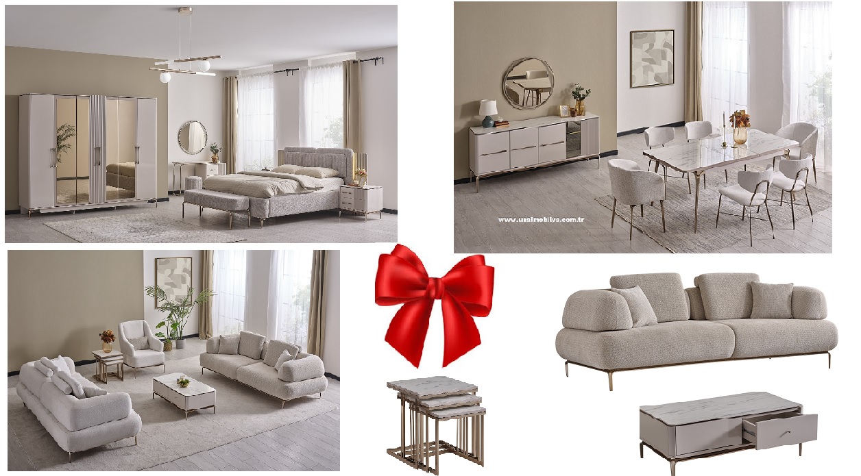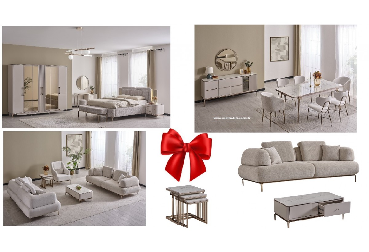 ALEN DÜĞÜN PAKETİ 6 KAPILI BAZALI YATAK ODASI TK + MASA AÇILIR+KONSOL+AYNA+4 ADET SANDELYE KOLTUK TAKIMI 3+3+1 YATAKLI FİYATIDIR.